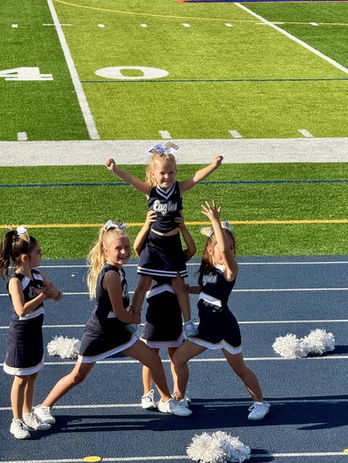 Junior Cheer is available for all girls ages 6-14, entering grades K-8. We offer a full season of sideline cheer in support of our CPC Junior Football teams, as well as the unique opportunity to advance in the sport of cheer through developing skills in stunting and choreography.